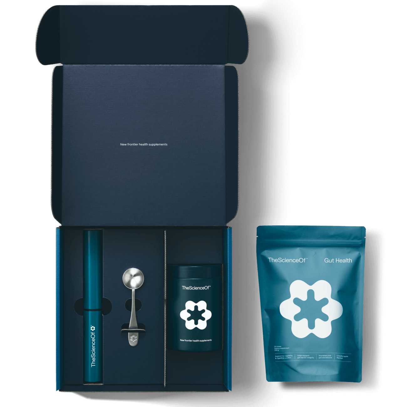 Our Gut Health formula, complete with complementary essentials to make your daily ritual effortless.